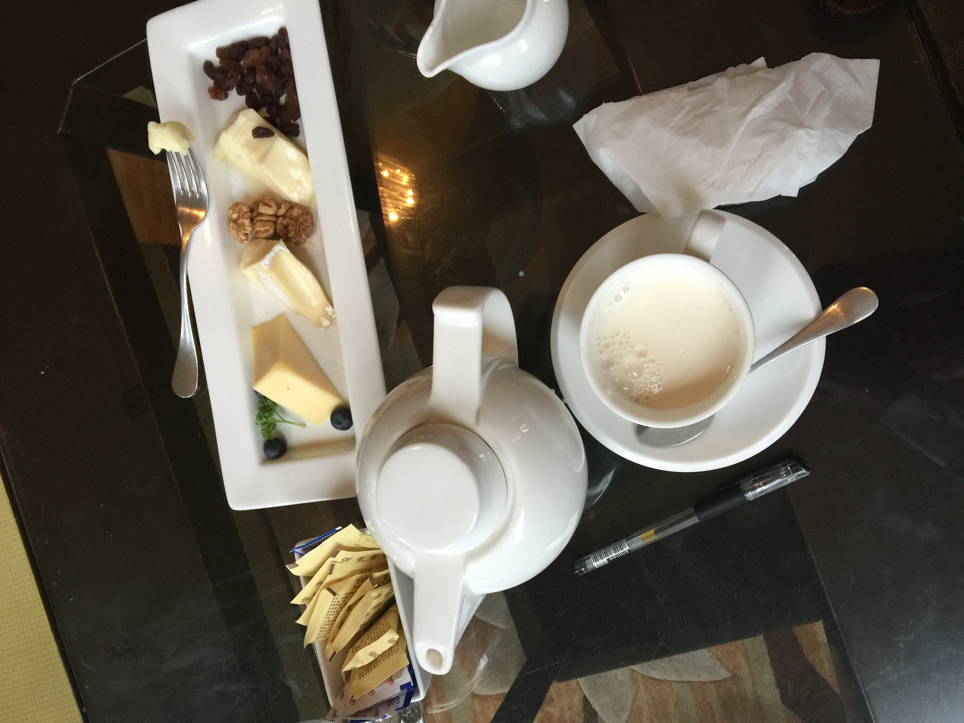 我和儿子提前来到酒店茶室,于是叫了服务员先要了一份英式红茶、儿子点了一份芝士沙拉坐了下来。